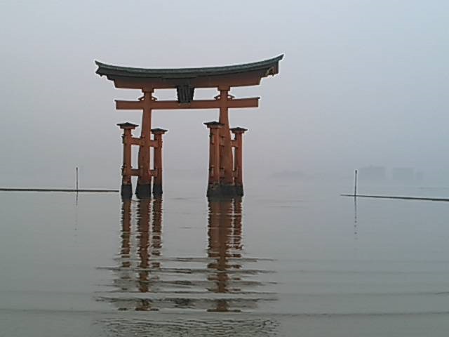 かなり、ガスって来て、幻想的な雰囲気の中の厳島神社。