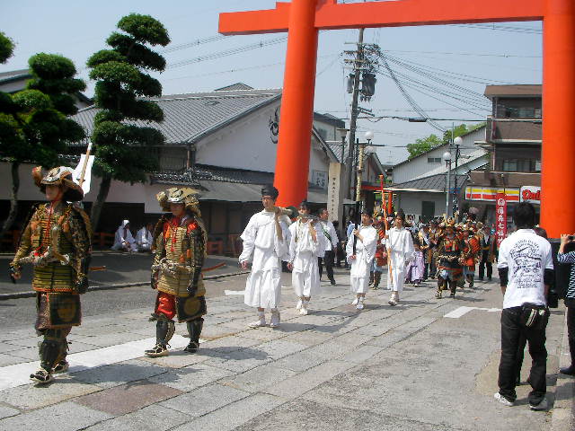 お祭りの鼓笛隊と武者行列がやって来ました。ラッキー。