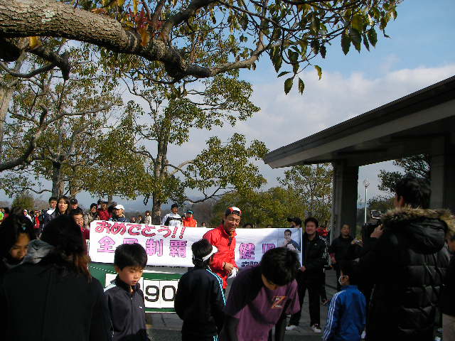 参加者は2kmのコースを走り、参加者の走った距離が約14,000kmになった所で、