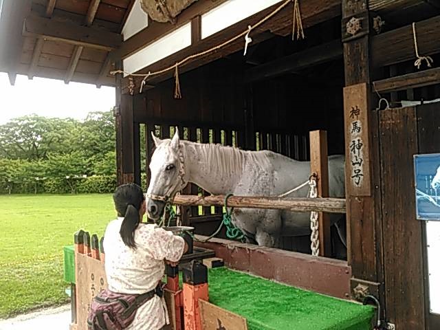 白い馬が今日は居ました。いつも居るわけじゃないんですよ。
